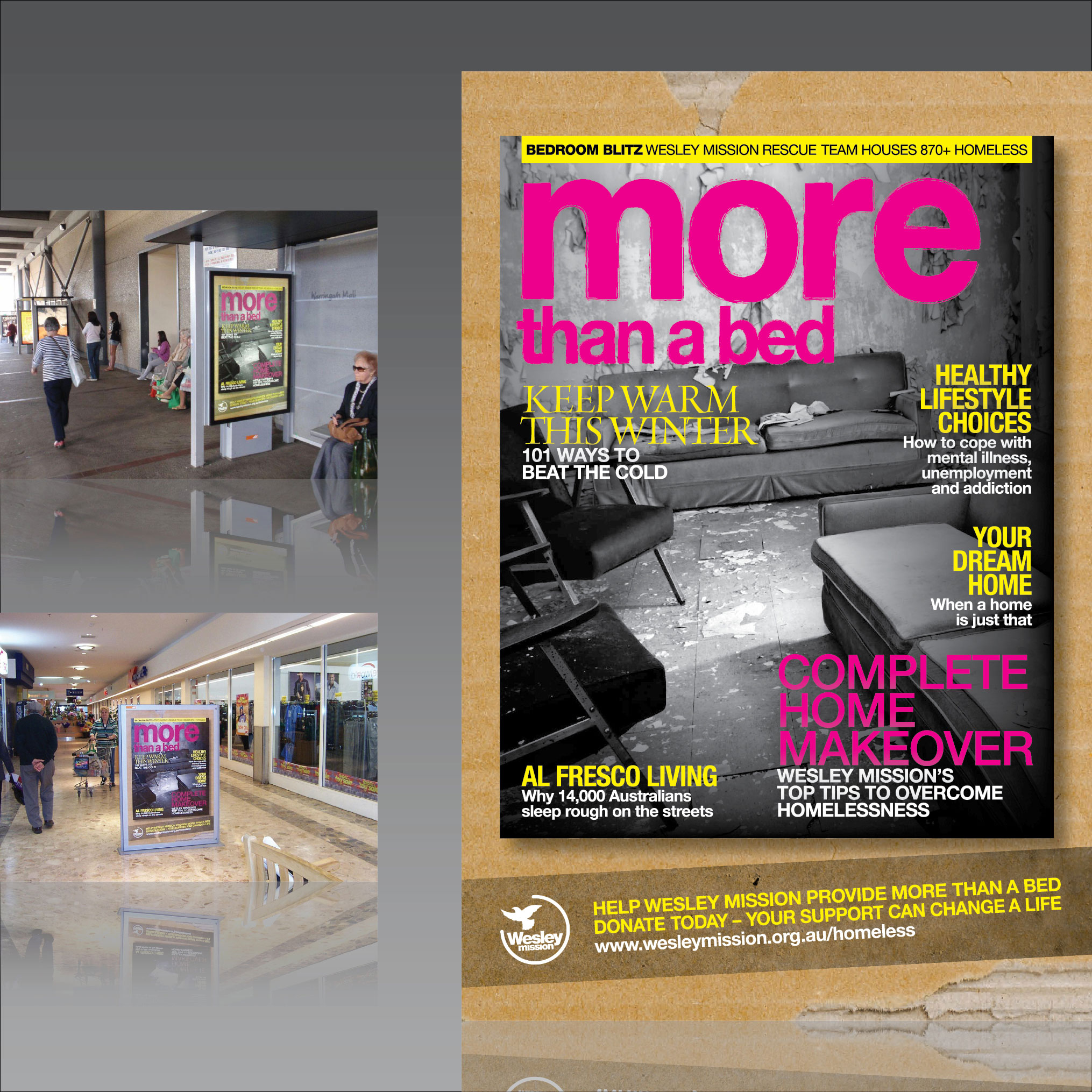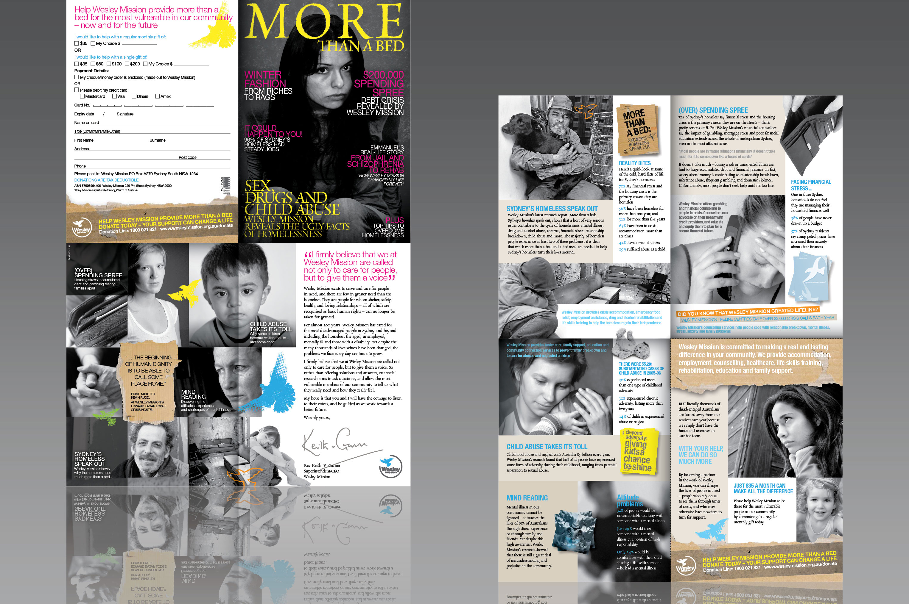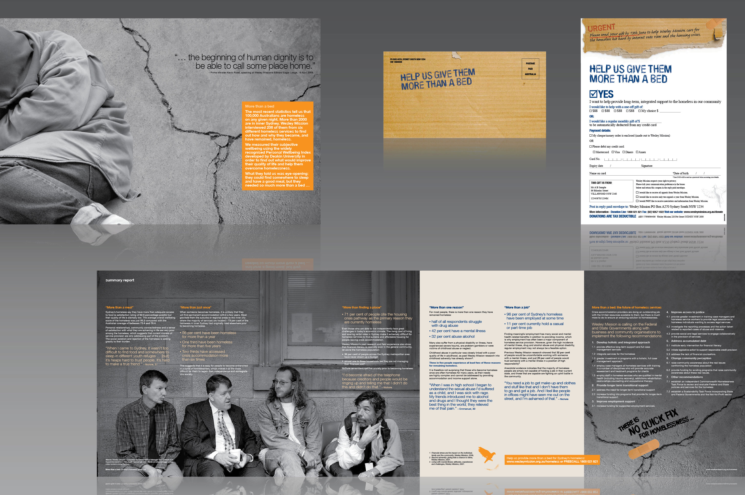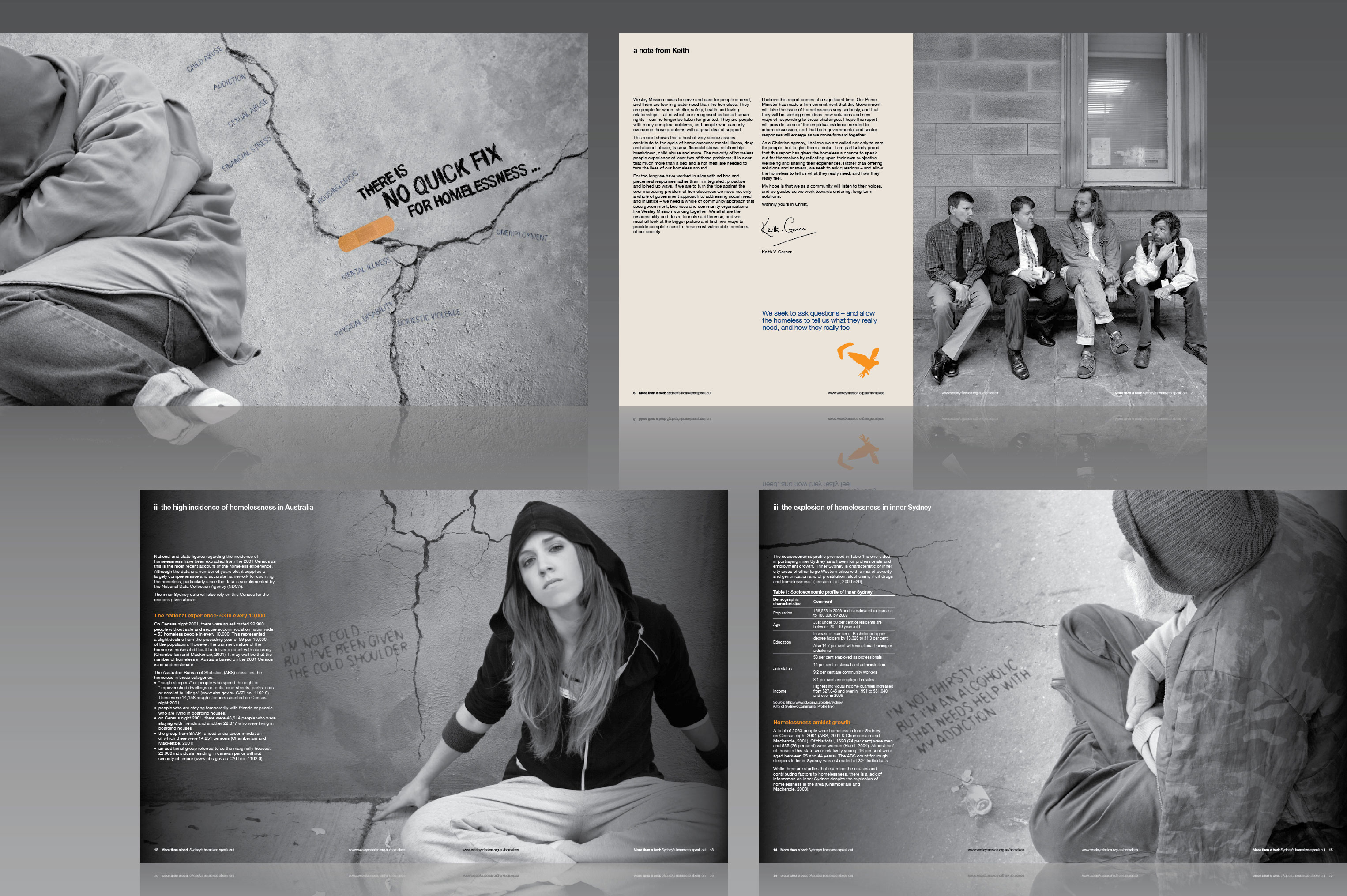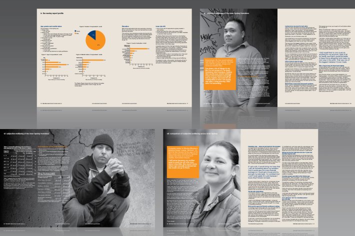 This report shows that a host of very serious issues contribute to the cycle of homelessness: mental illness, drug and alcohol abuse, trauma, financial stress, relationship breakdown, child abuse and more. Role: concept, design, artwork.