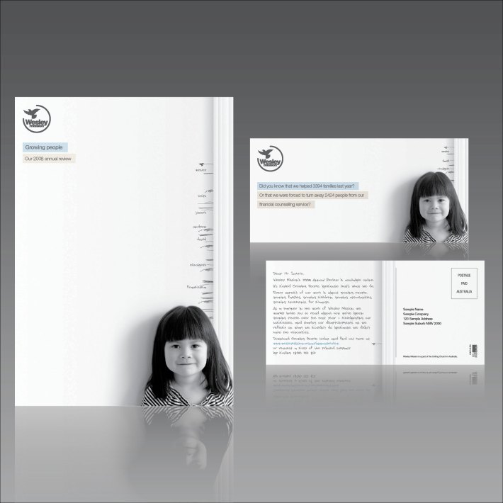 Create a simple and succinct theme and look for the 2008 annual report. Our approach should not be seen as rich, lavish or super clever, but more a “quiet achiever” stance – rising to the challenges with more to do in the future. Role: concept, design, artwork.