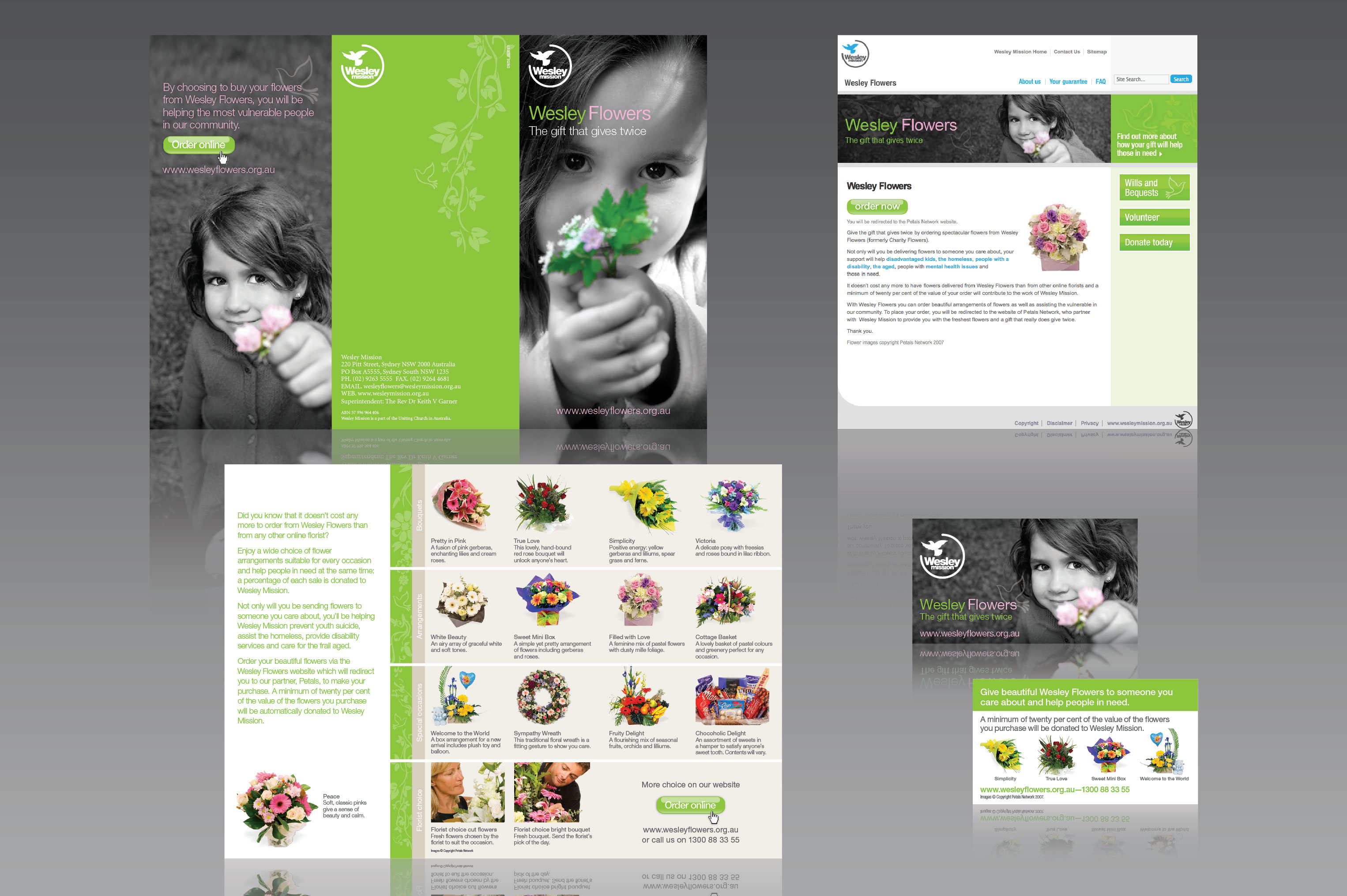 With Wesley Flowers you can order beautiful arrangements of flowers as well as assisting the vulnerable in our community. Role: art direction.