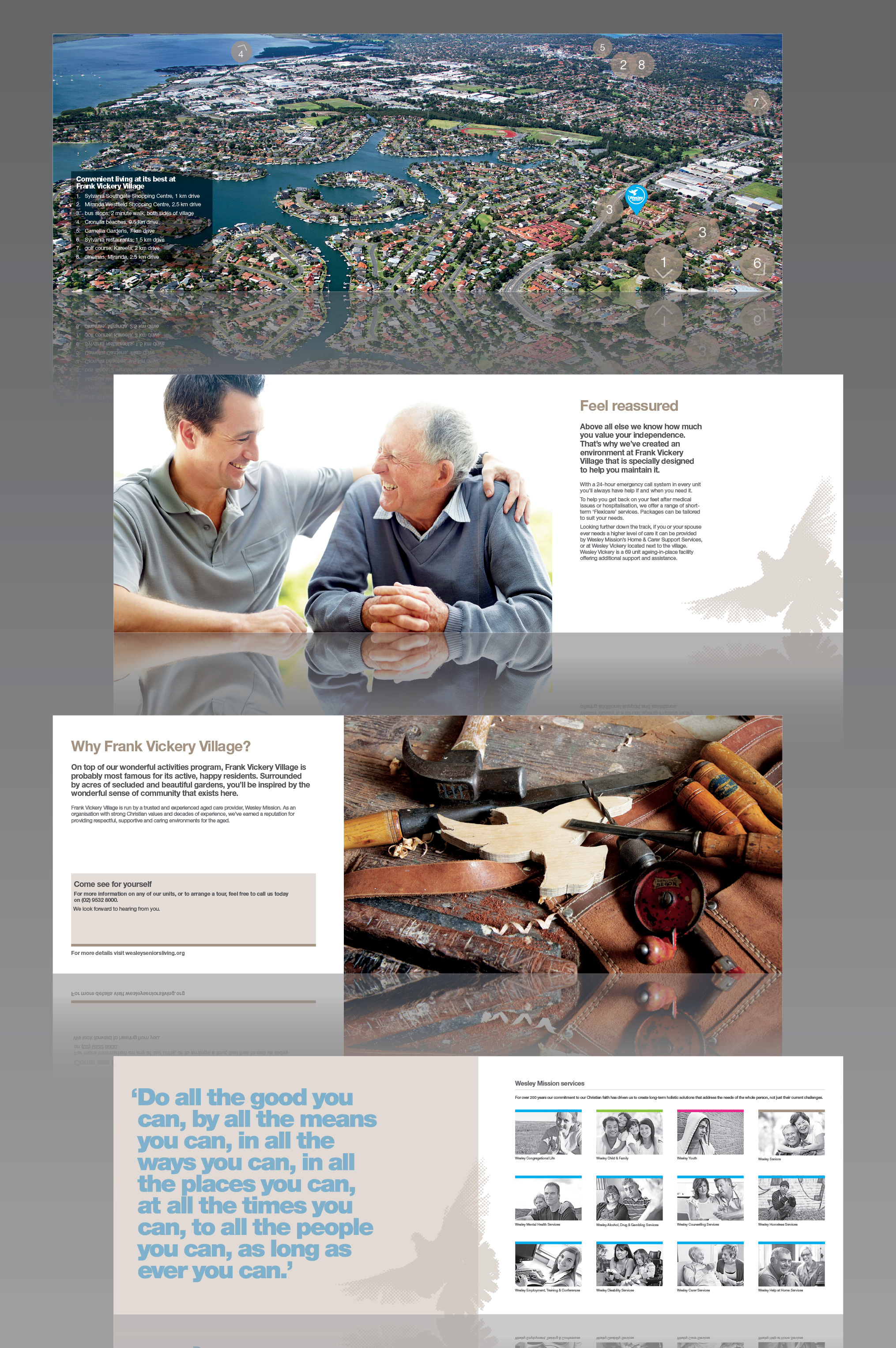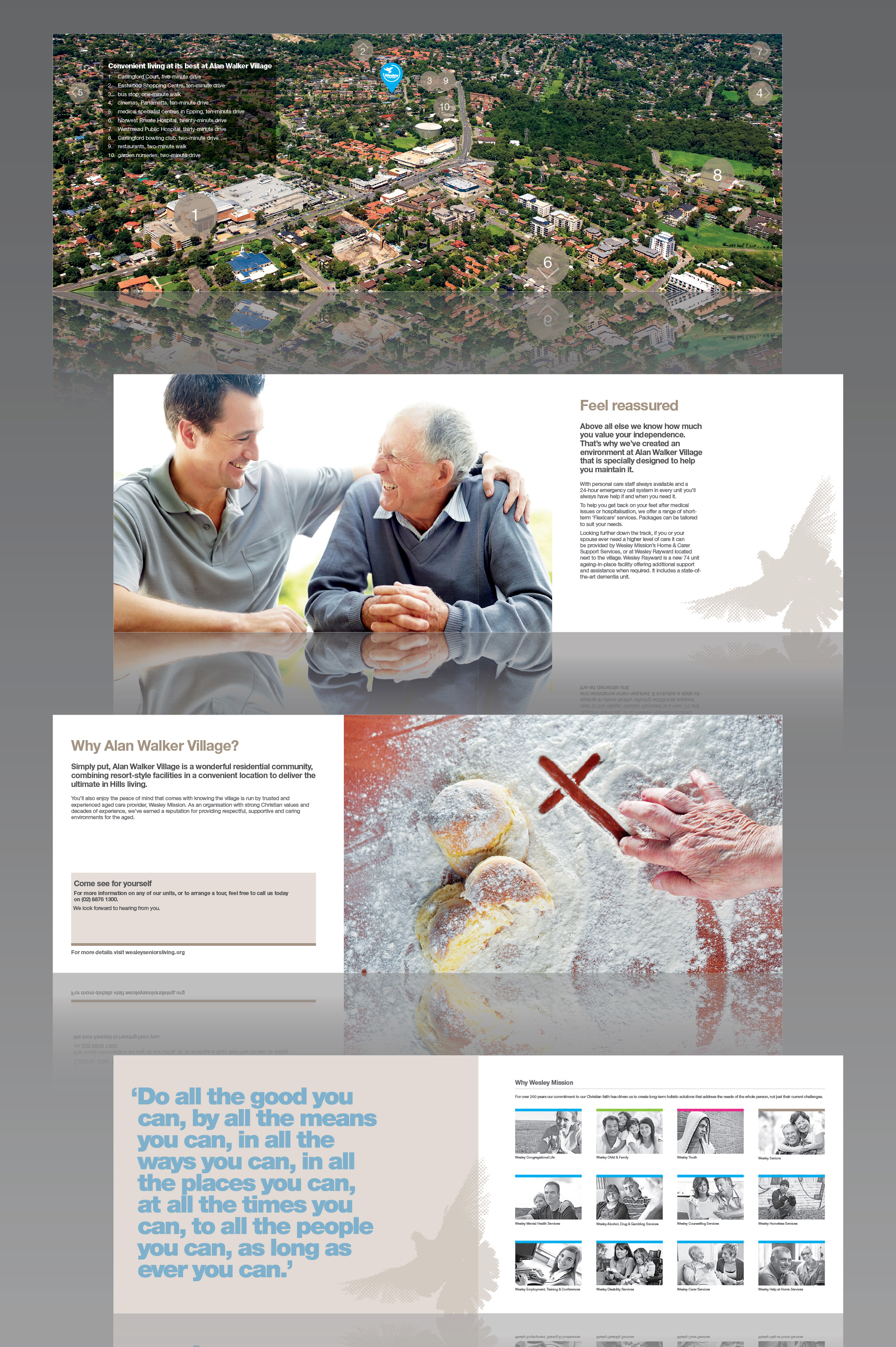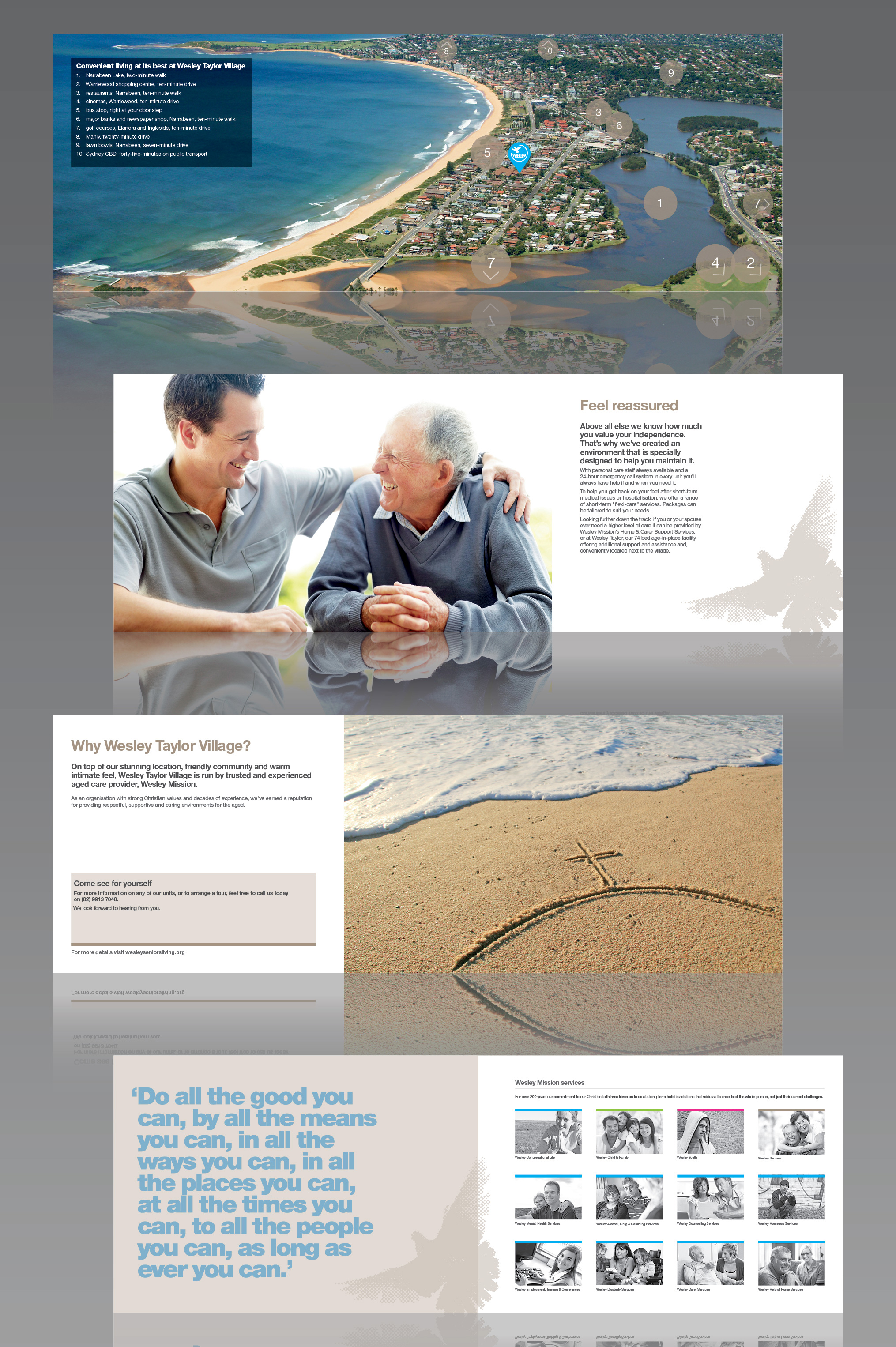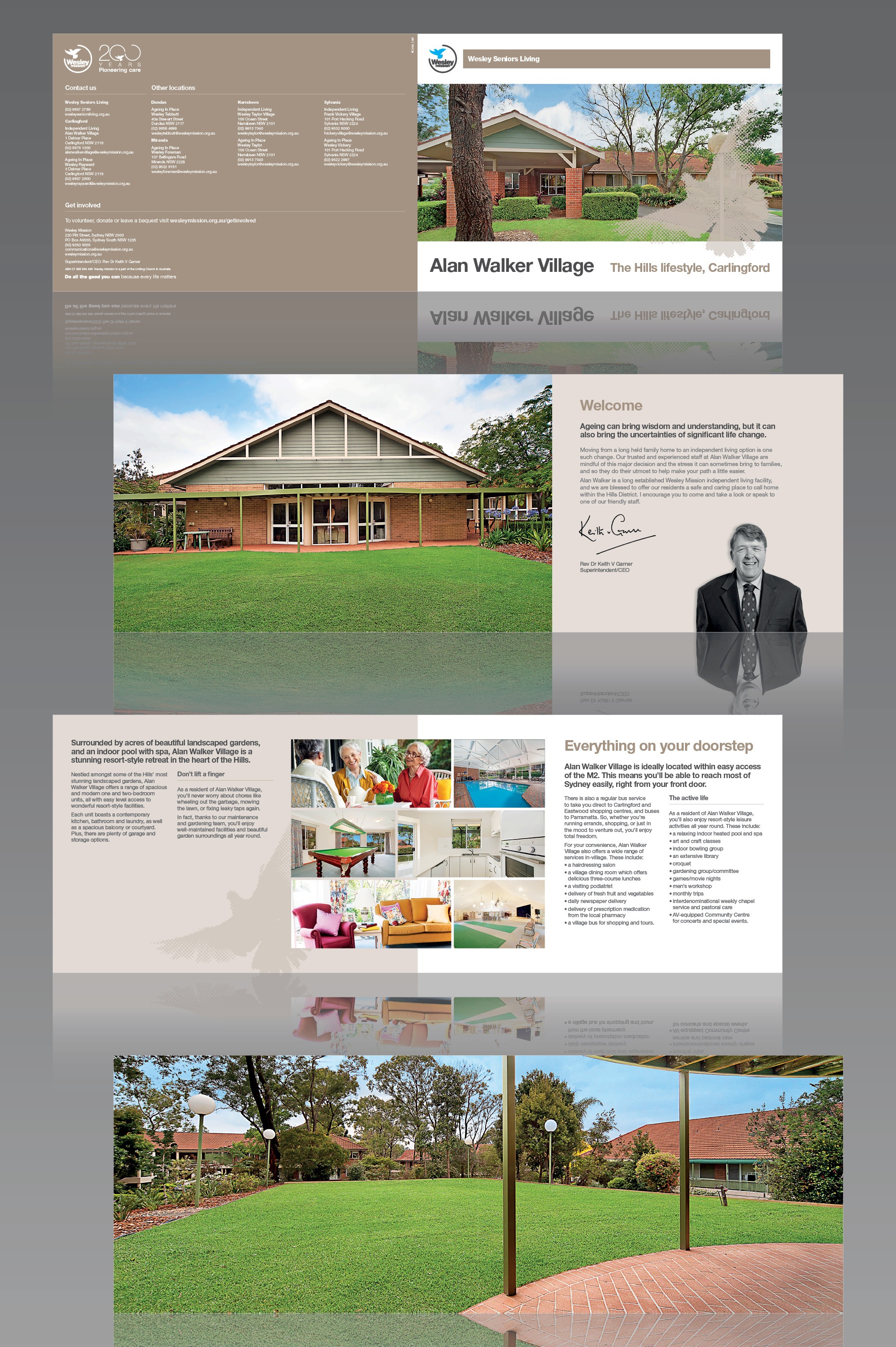 Develop property brochures for Wesley Seniors Living that showcase features, lifestyle and help drive enquiries leading to sales. Role: design, artwork.