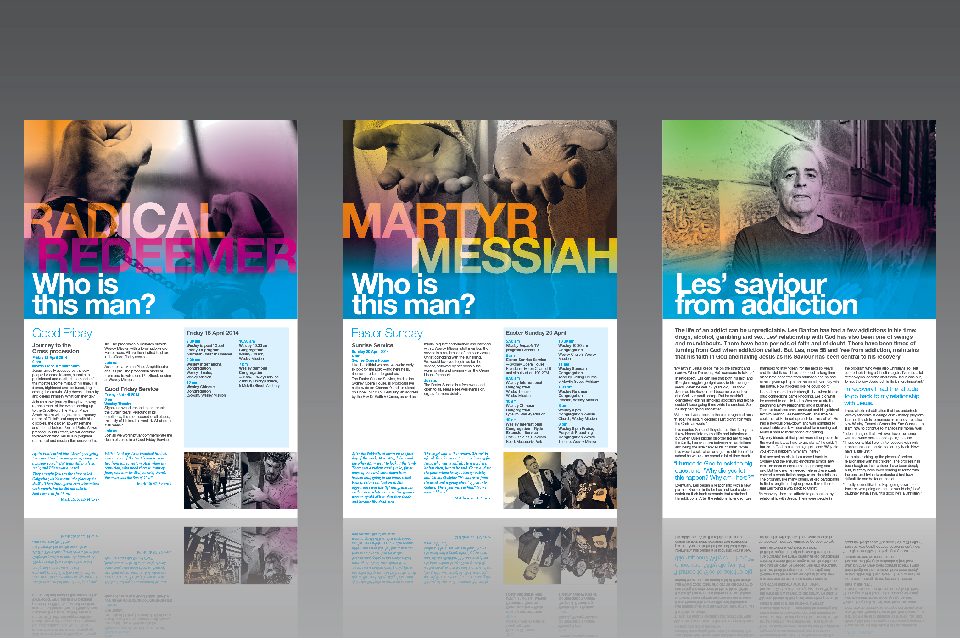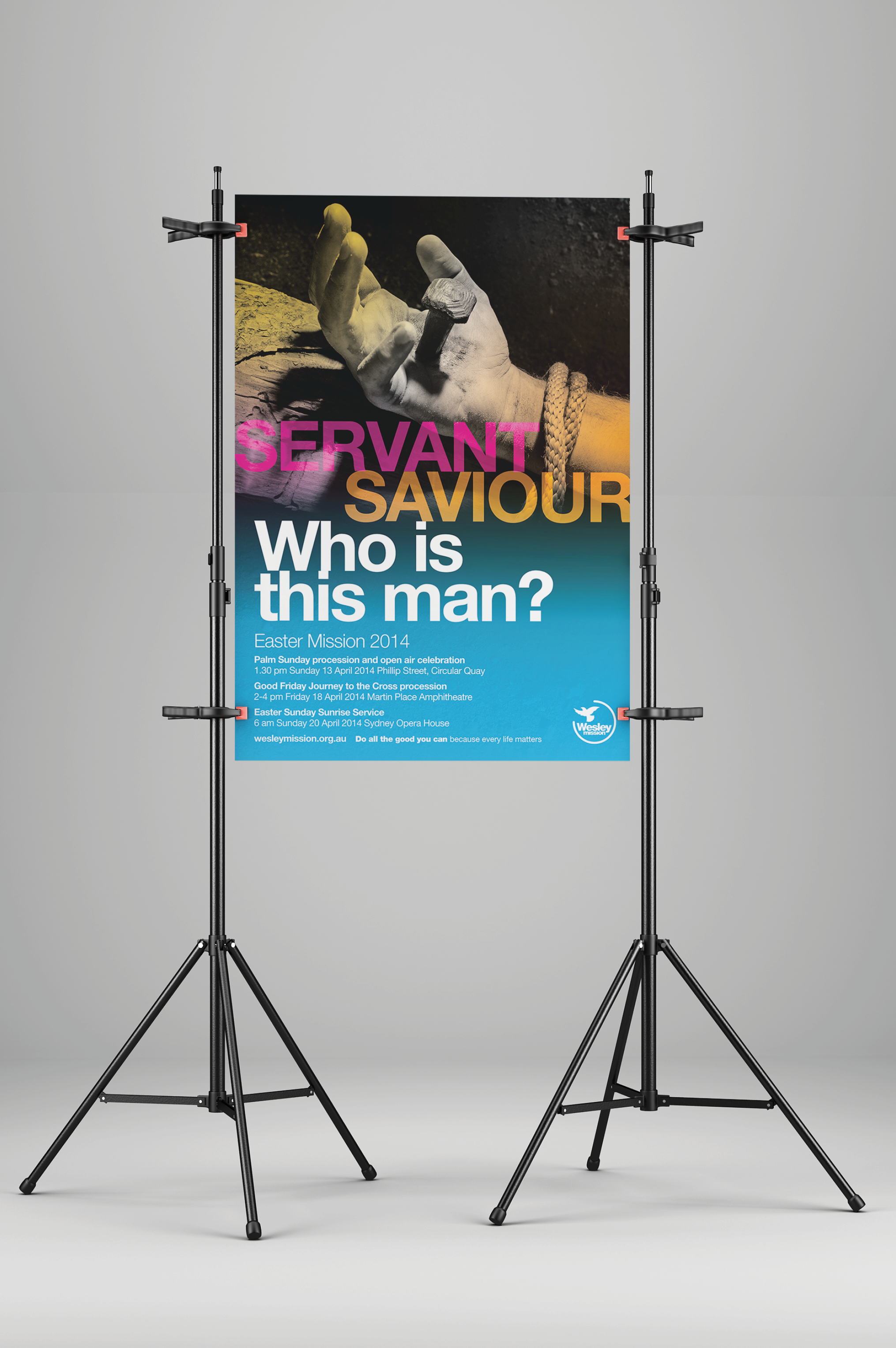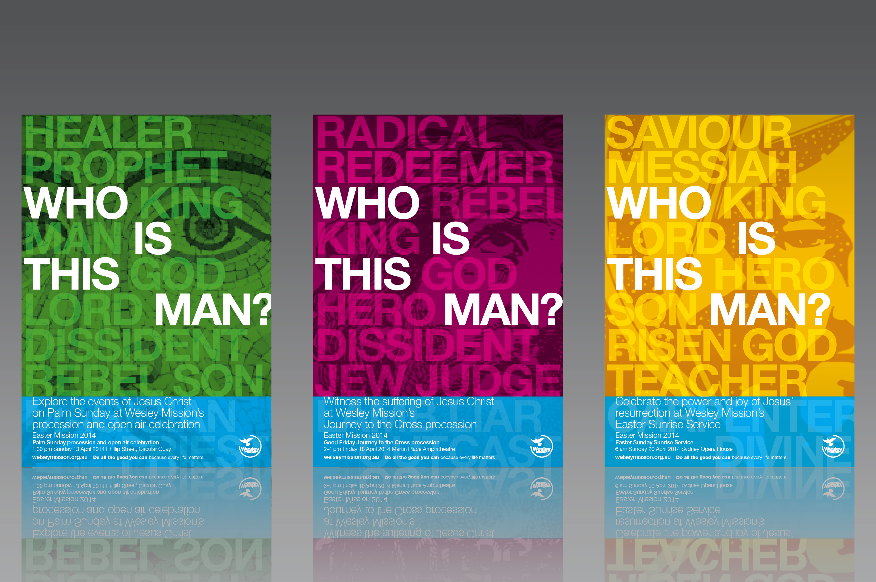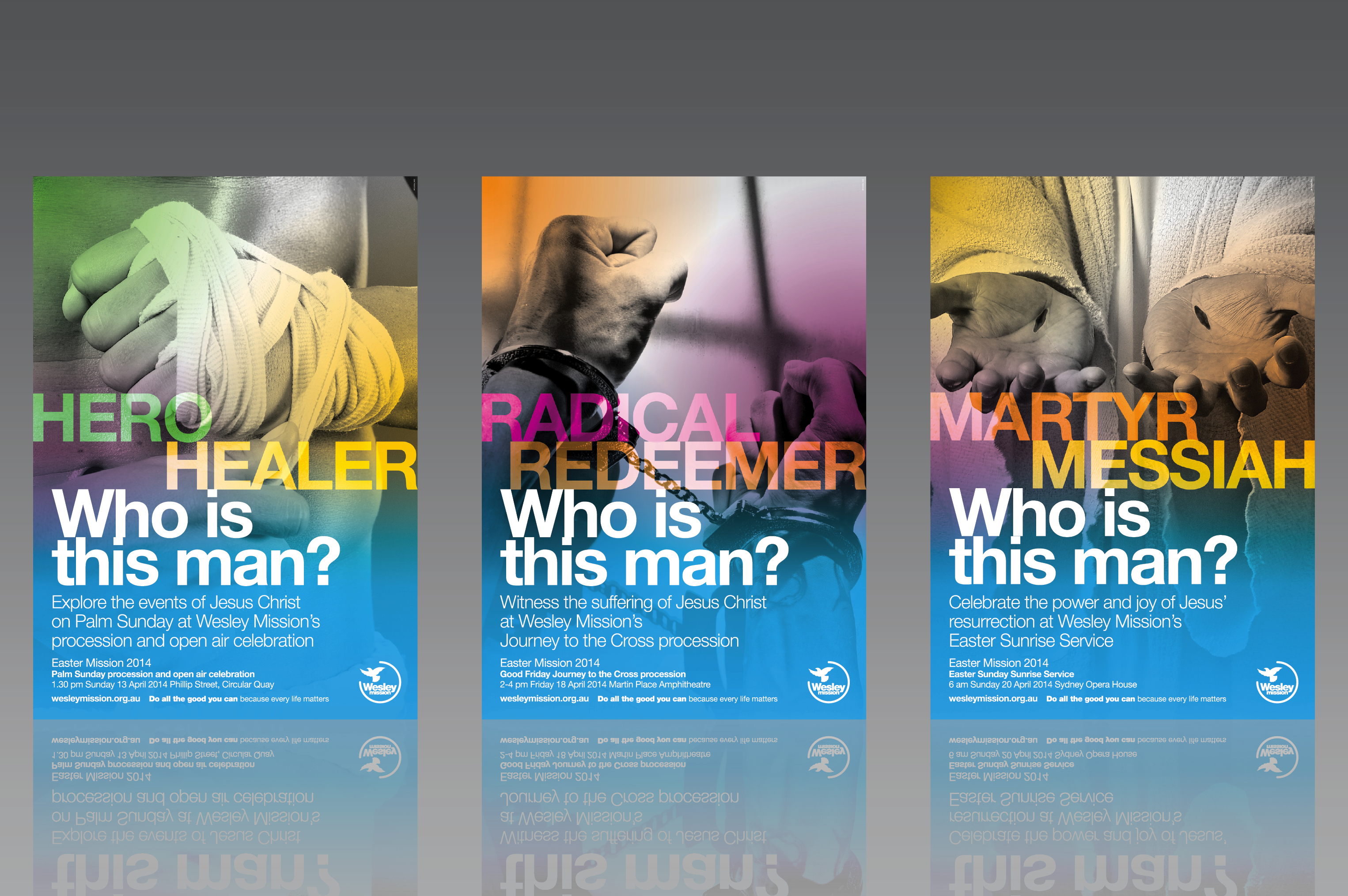 Create an innovative and intriguing treatment that successfully conveys the complexity and appeal of Easter. Raise awareness of the Easter message and prompt members of the public into actually thinking about who Jesus Christ was/is. Role: concept, design, artwork.