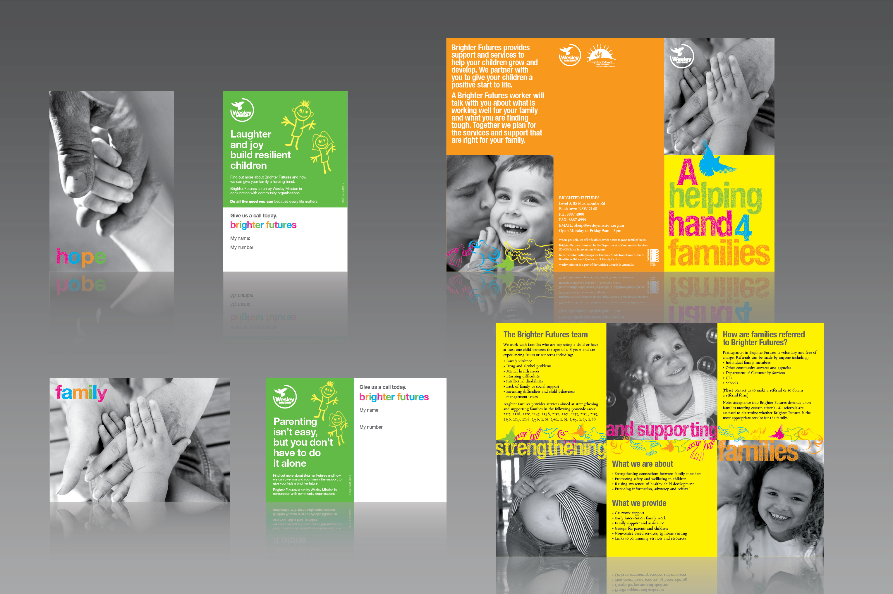 Brighter Futures works alongside families where there is an identified risk that is impacting a child’s safety, welfare or wellbeing. The program is designed to support families to stay together—to prevent the escalation of concerns for children transitioning into the statutory child protection domain. Role: design, artwork.