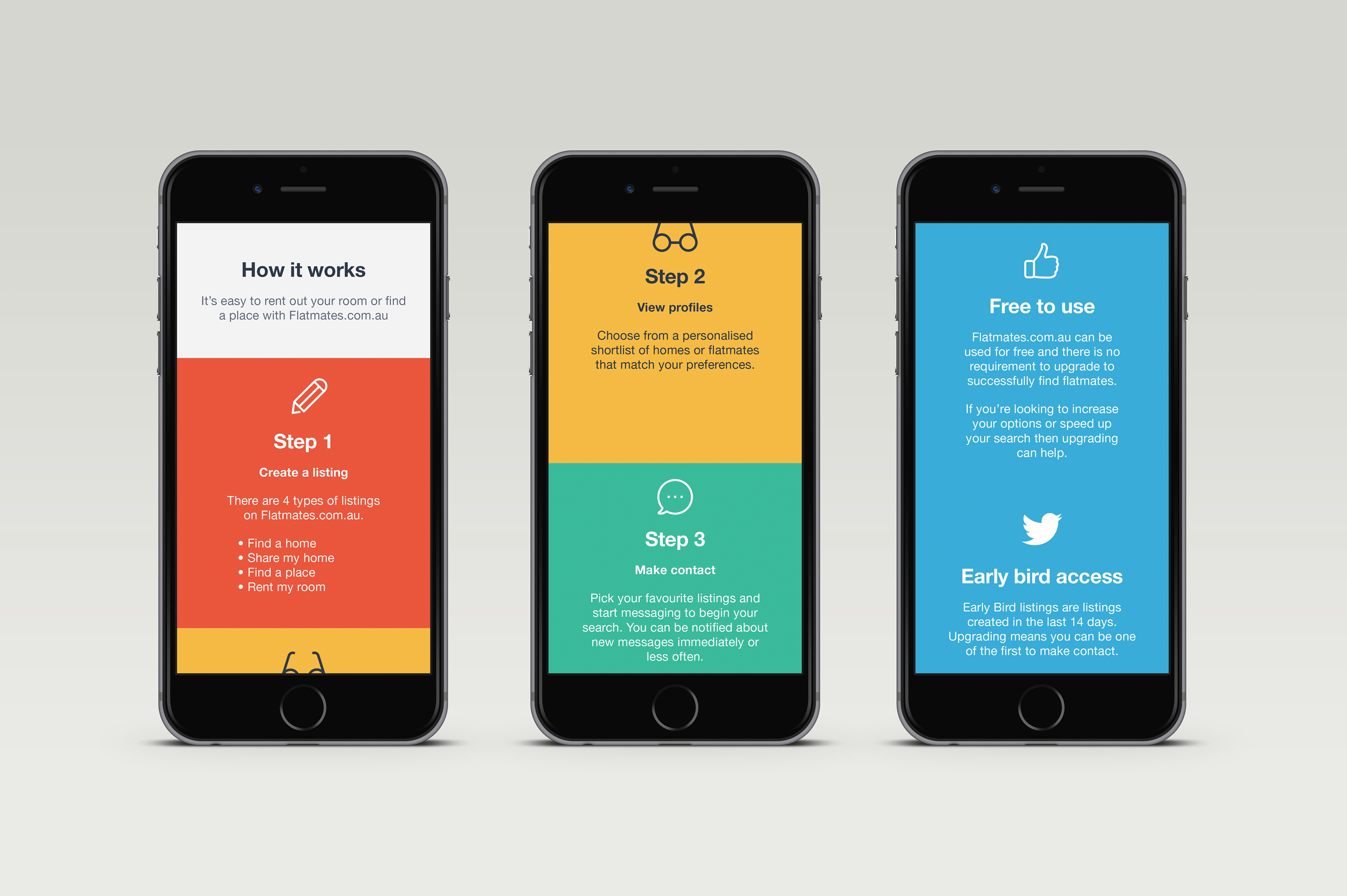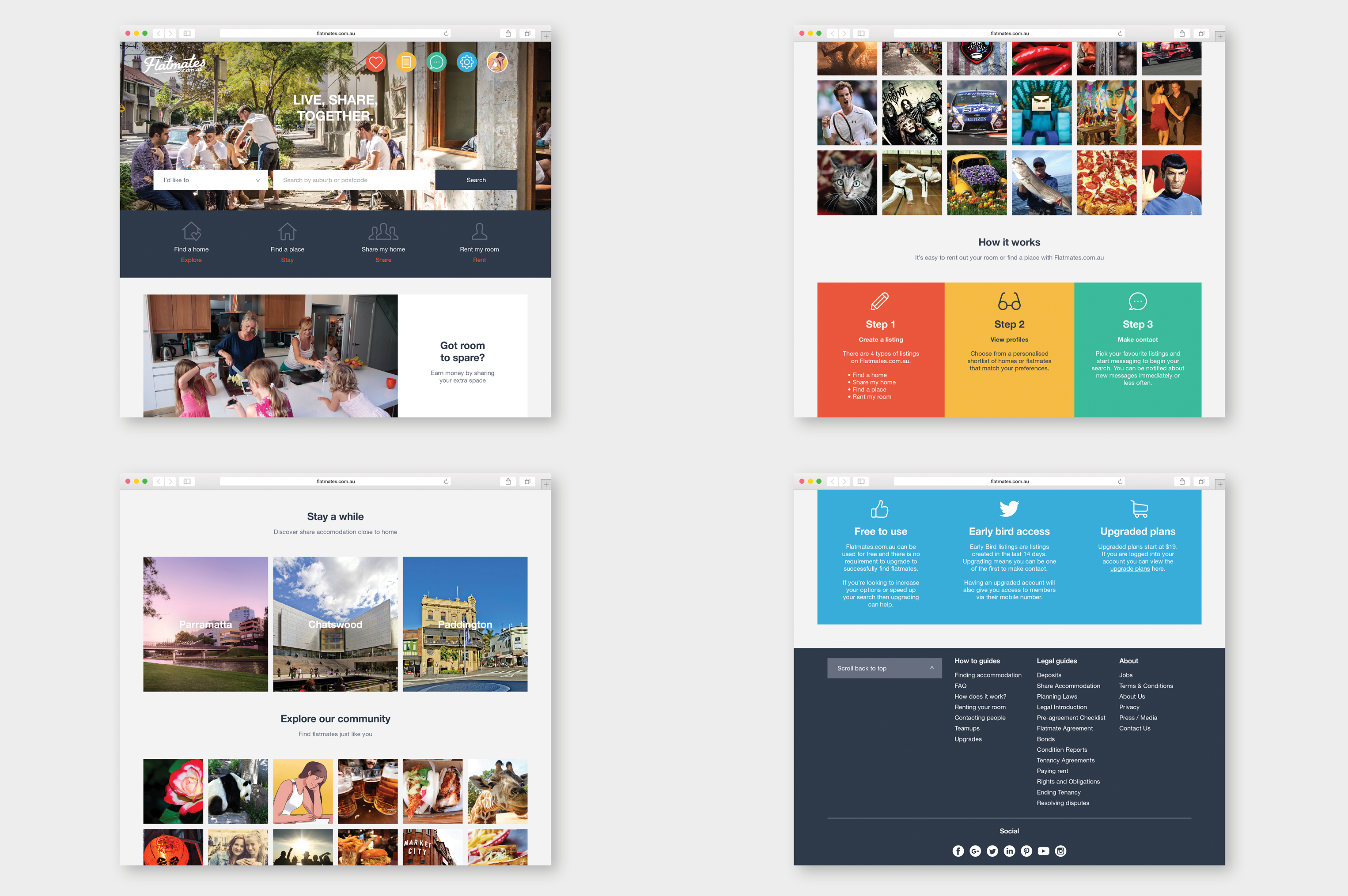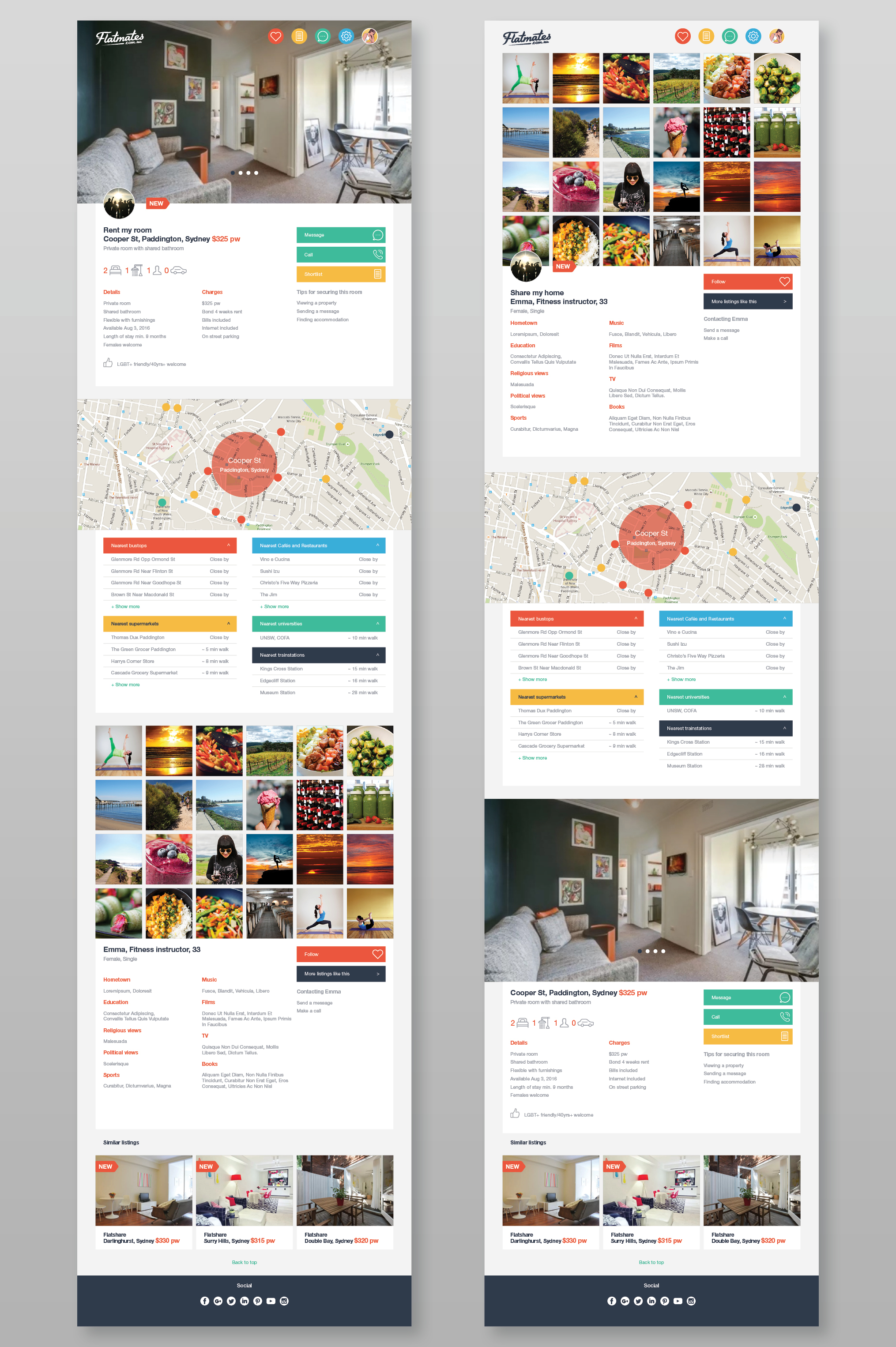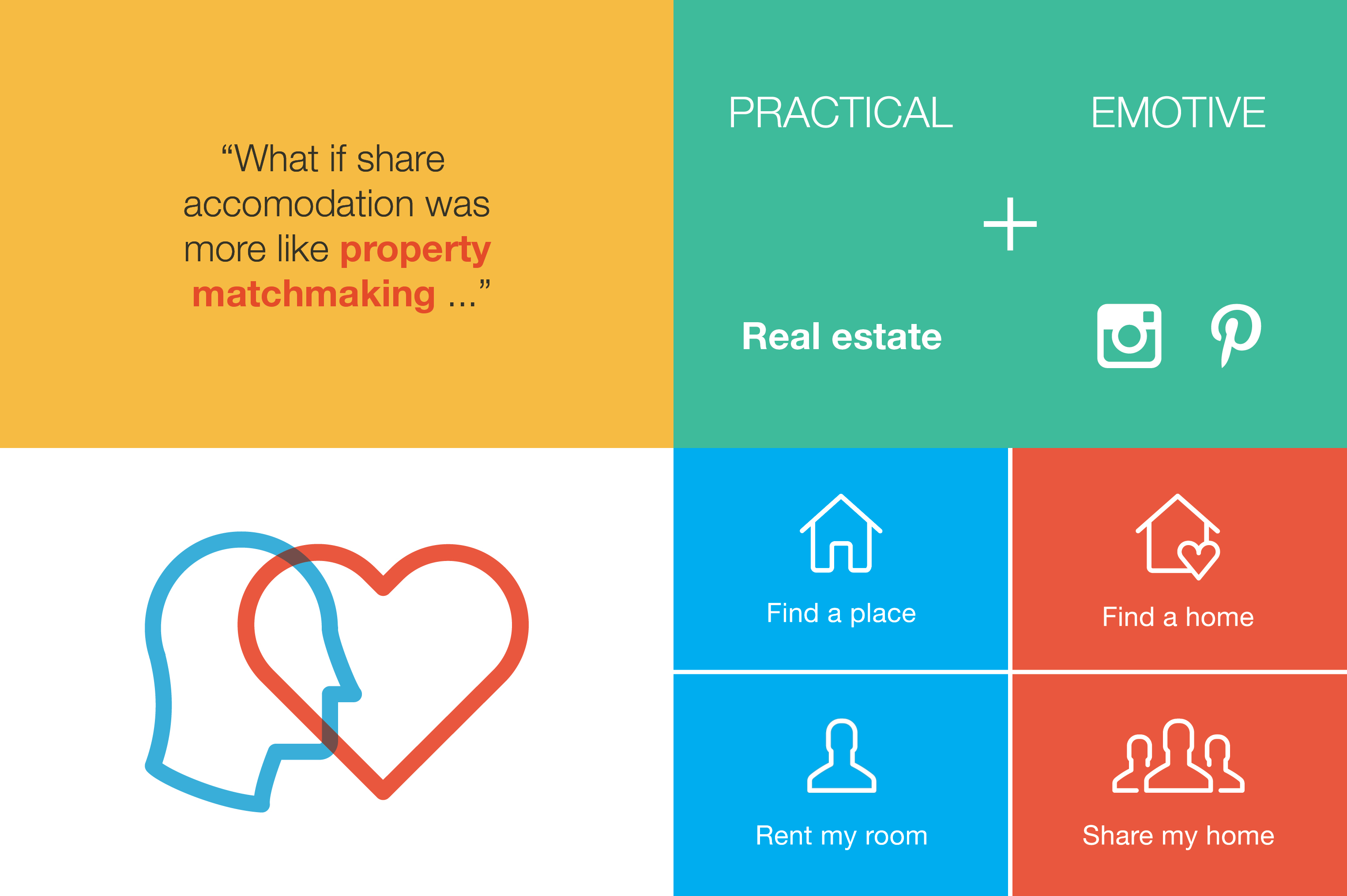 flatmates.com.au wants to revolutionise share accomodation, shifting from a directory style search approach to a more emotive and engaging discovery experience. Make a search prompt an emotive proposition and give flatmates.com.au a playful personality that sets it apart from the competition. Your proposed solution should explore a range of aesthetic approaches and create a unique experience within the category. Role: concept, design, artwork.