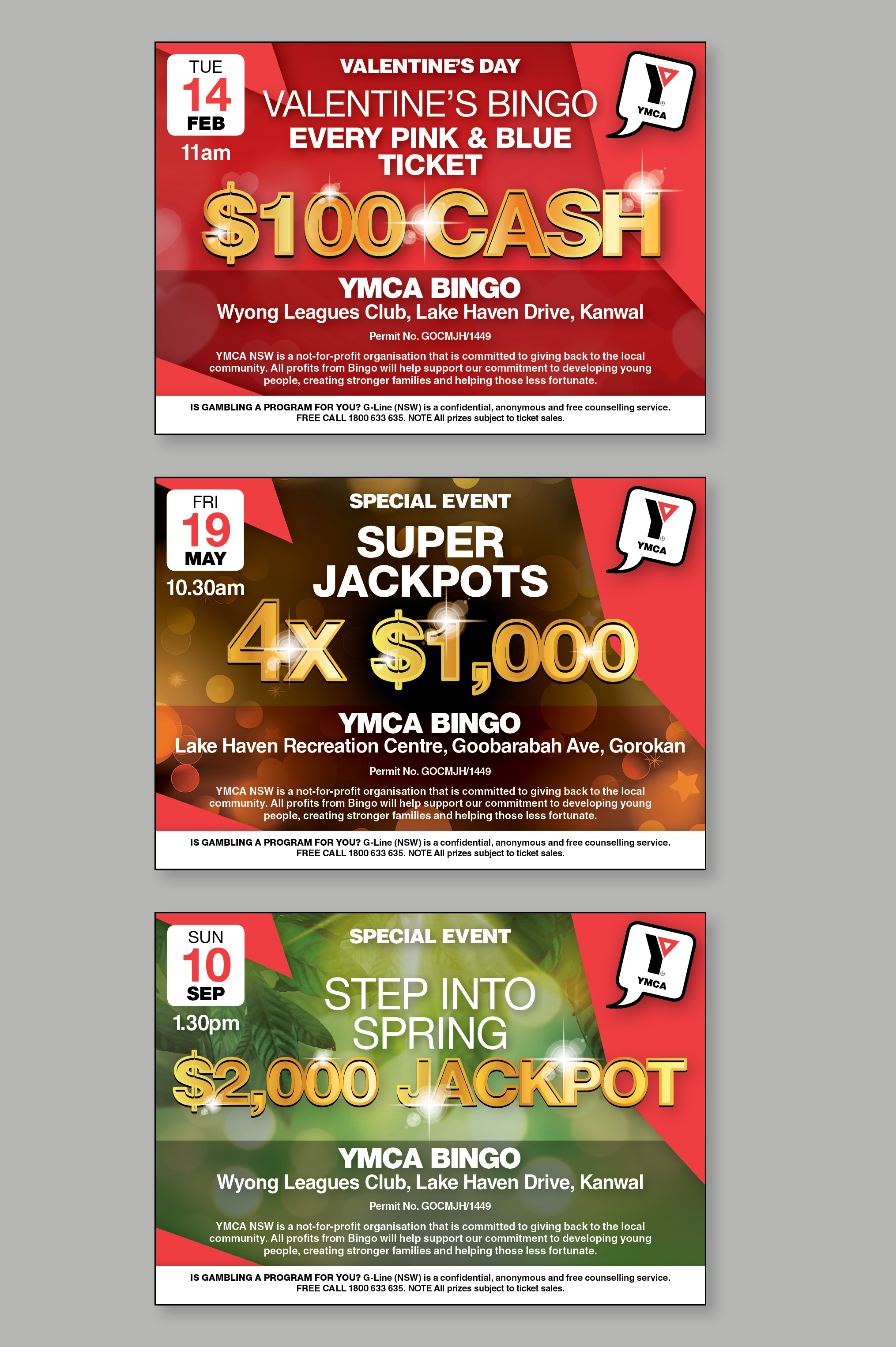 Refresh and update the look and feel of YMCA Bingo. Develop creative that reflects the theme of each YMCA Bingo event. All profits from YMCA Bingo will be used for the charitable activities of YMCA NSW. Role: concept, design, artwork.