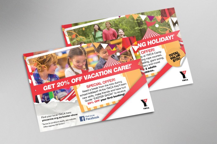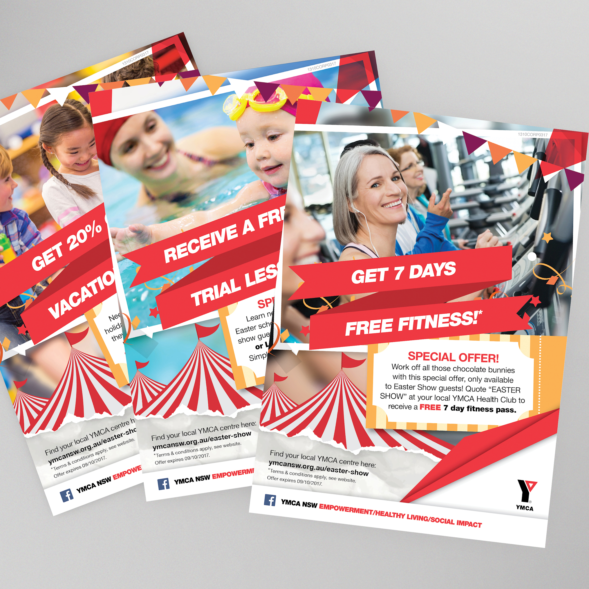 Have fun for FREE at the Sydney Royal Easter Show this year at YMCA Kids World Activity Space! Located in the Kids Carnival Zone on Olympic Boulevard near the livestock pavilions, the YMCA Kids World activity space will showcase what the YMCA does and feature a gymnastics obstacle course supervised by trained instructors, a camping area where kids (and adults!) can learn new skills and a hands-on creative play zone. Role: concept, design, artwork.