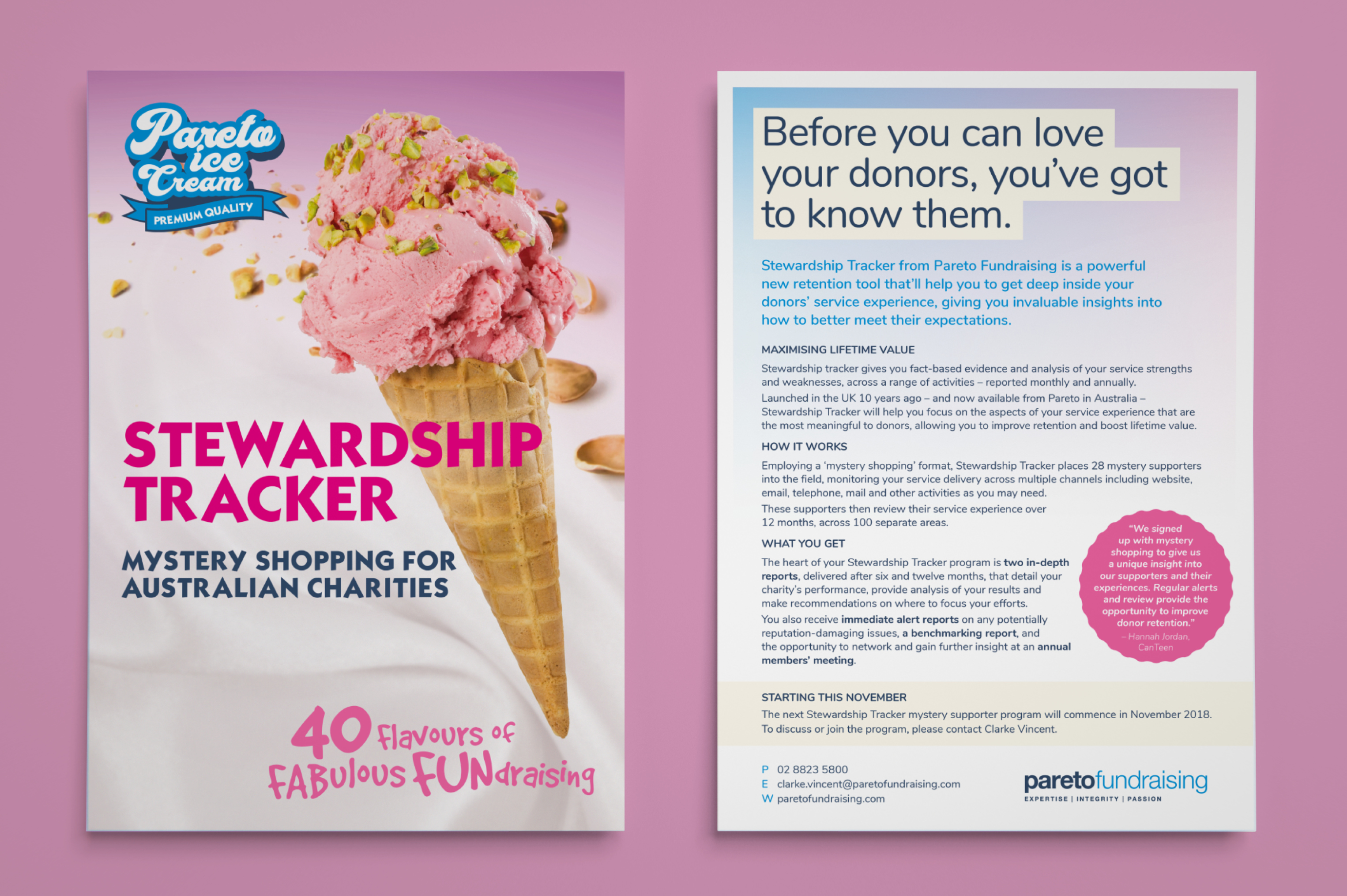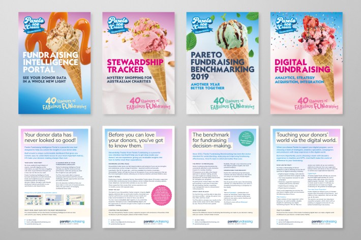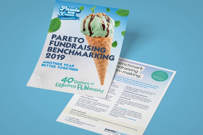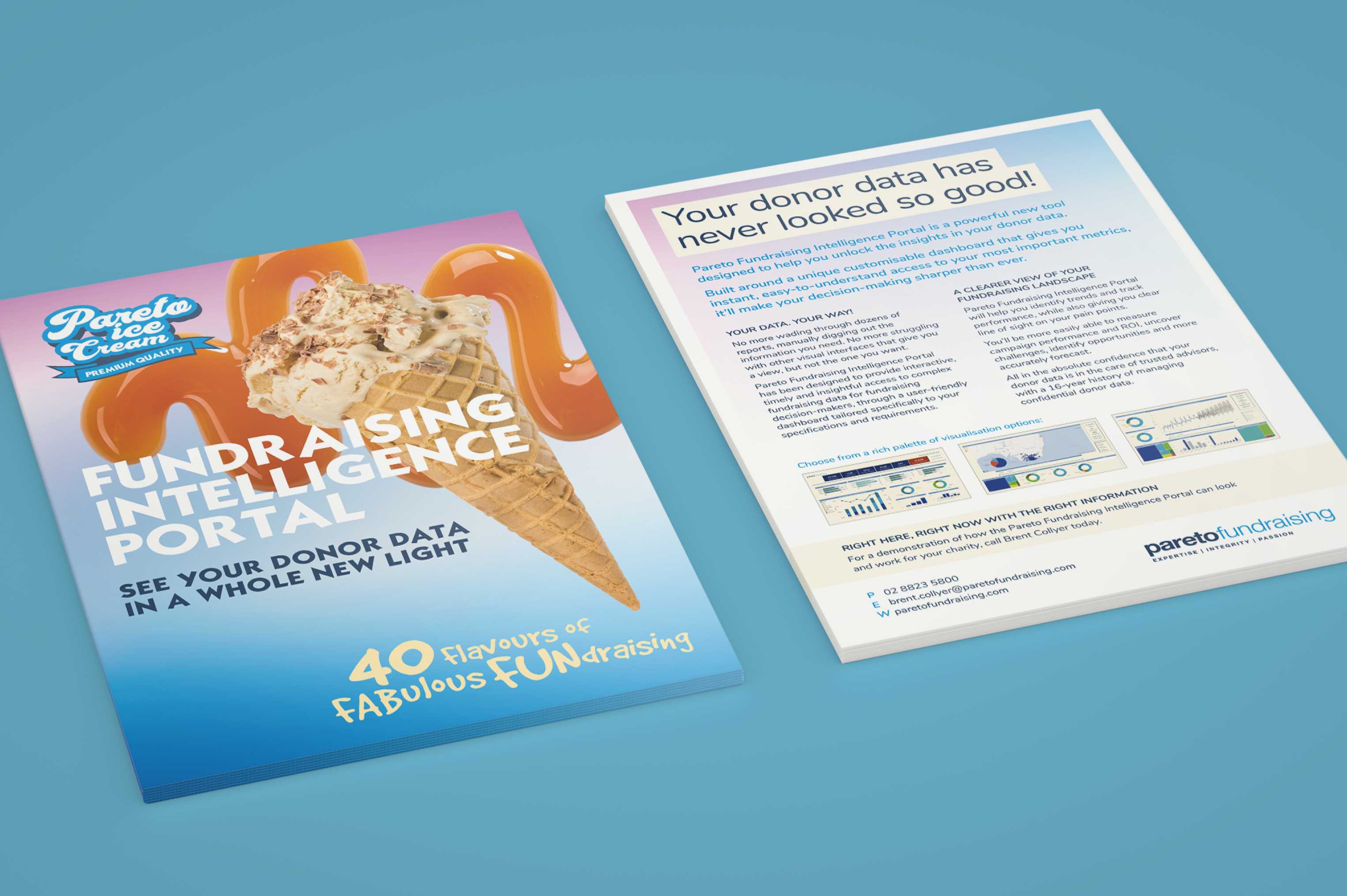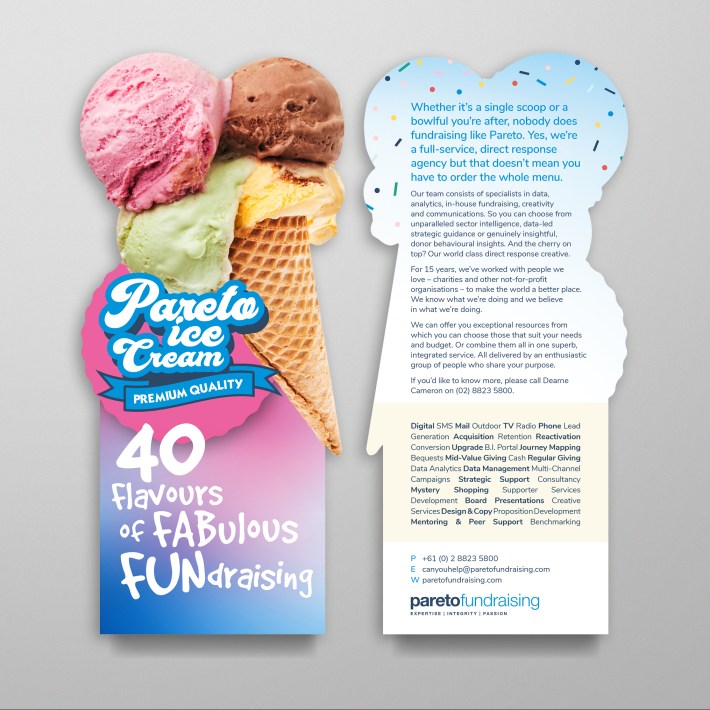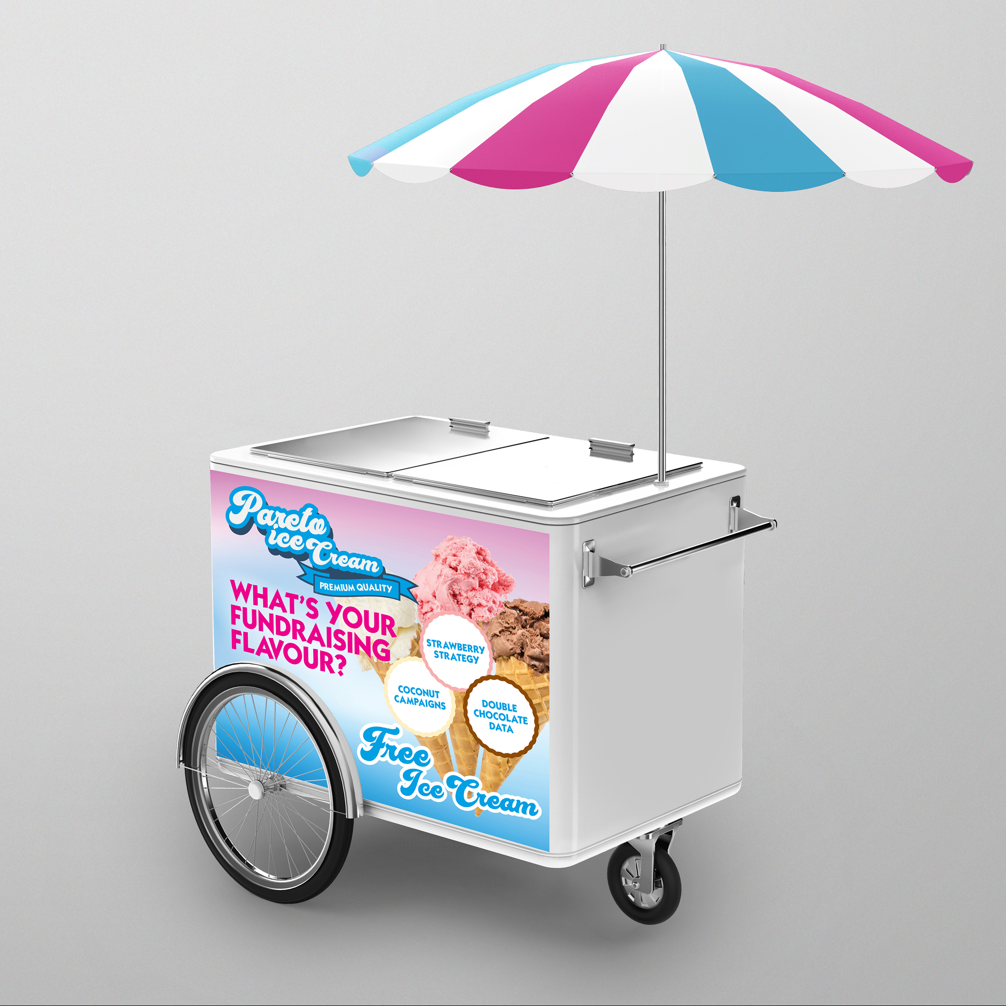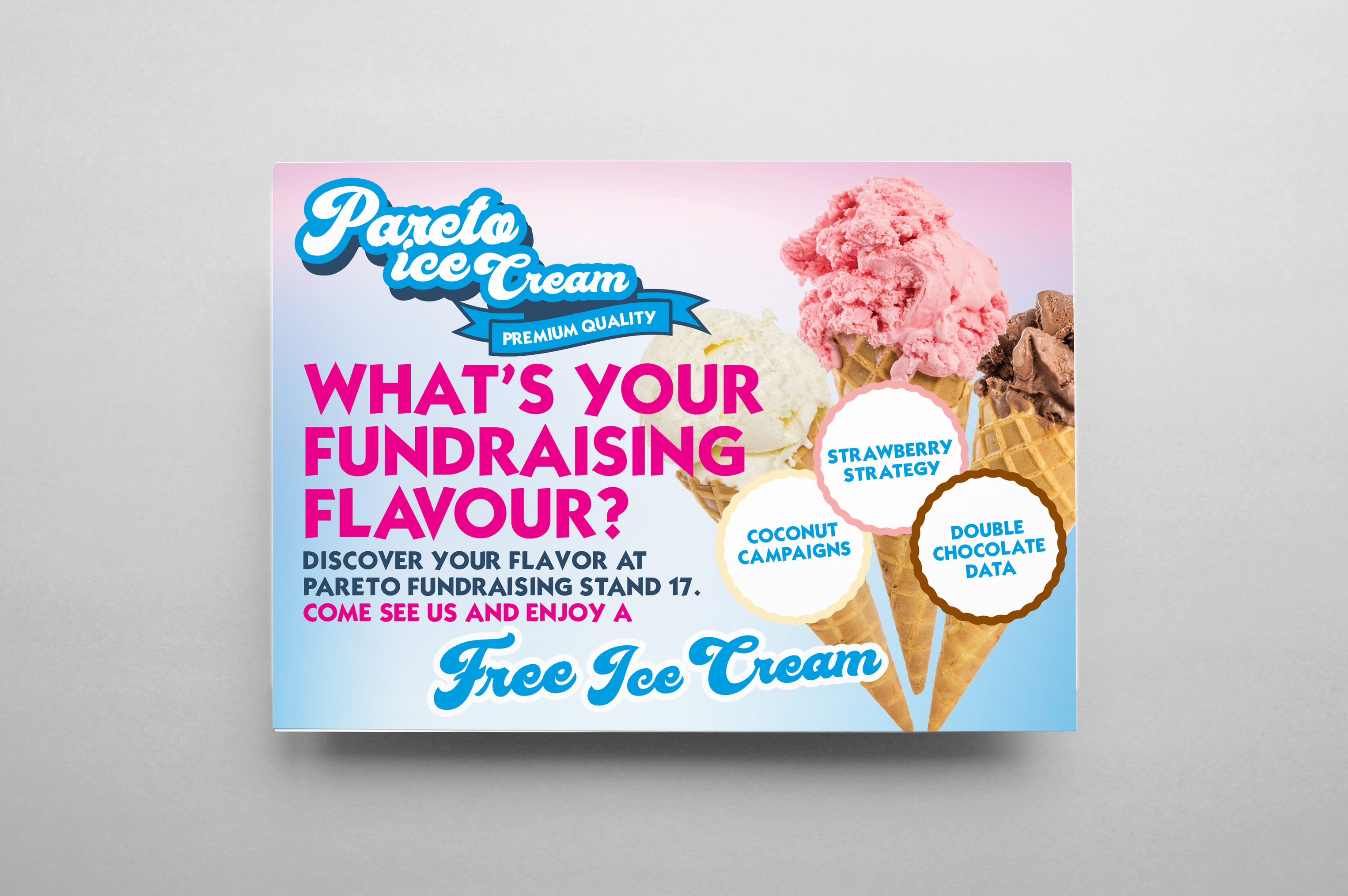 F&P (Fundraising and Philanthropy Magazine) presents five conferences a year that focus on different aspects of fundraising practice. The conferences attract fundraising managers and executives across the spectrum of different nonprofit organisations in the Australia/Pacific region. Create a look and feel for the Pareto Fundraising (Ice Cream) stand.